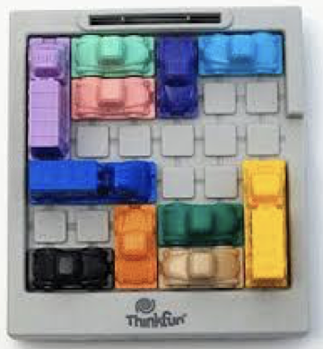 Game state is what you have to save in case you need to stop playing and resume your game later. If your game is Tic-Tac-Toe, the game state is the state of the board—all the X's and O's— plus whose turn it is. If your game is Chess, the game state is what pieces are on which squares, and whose turn it is. If your game is Poker, the game state is the contents of each player’s hand, what cards have been played, the cards that remain in the deck, where the game is in the bid/play cycle, and whose turn it is to bid or play. If your game is Rush Hour (Figure Rush Hour), the game state is which pieces, in which orientations, are in which squares.