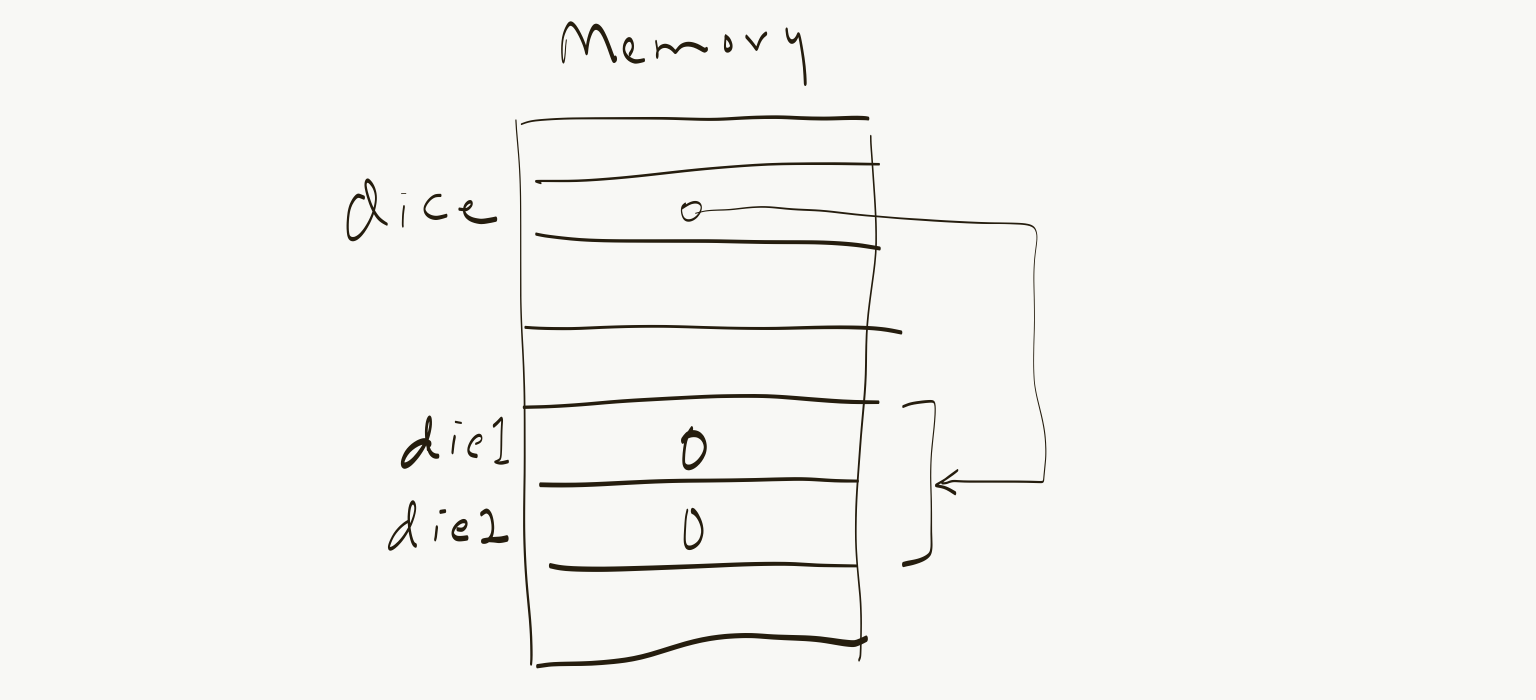 dice.die1 and dice.die2 have the value 0 because that is the default initial value for ints. Suppose we then wanted to assign the values 3 and 4 to the dice. We could do that with these statements: