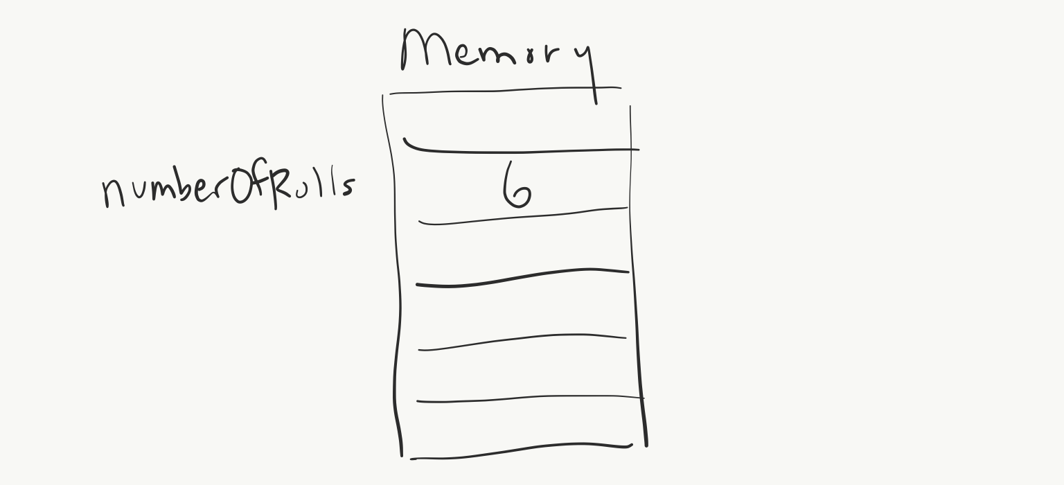 int numberOfRolls; // declares numberOfRolls as an int variable
